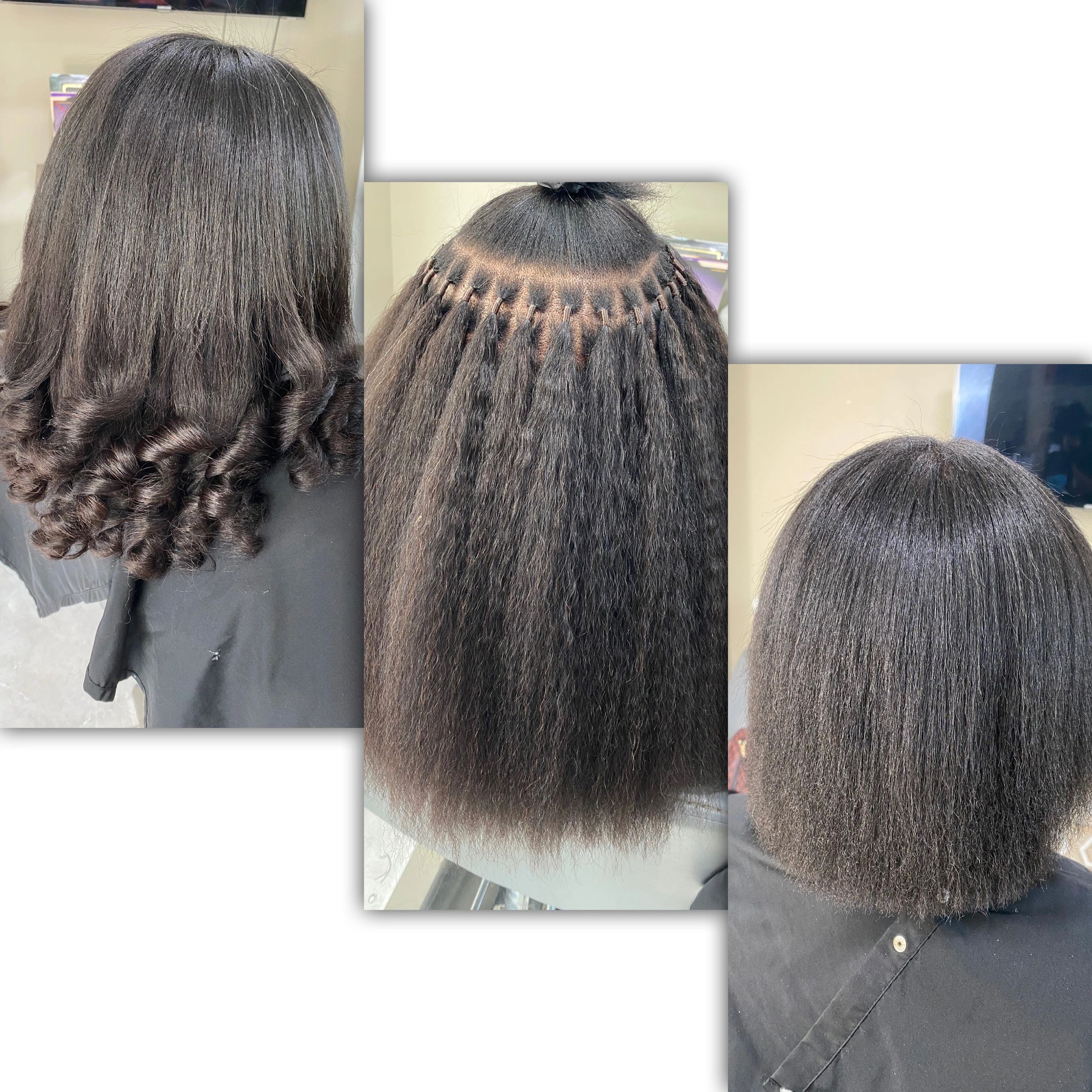 In this space, I focus on enhancing beauty through Brazilian Knots, a hair extension technique that adds length and volume. This method involves attaching loose strands of hair to a client's natural hair near the scalp using a special elastic string, ensuring a seamless look.